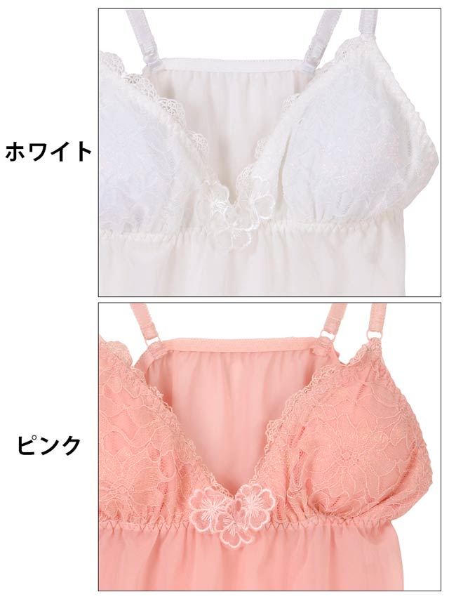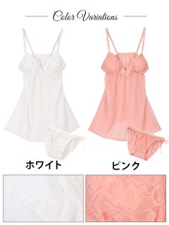 オーロラのラメ糸がキラキラと輝くコードレースのフェミニンベビードール♪胸元は繊細なコードレースで仕立てた上品なデザイン。シンプルながらもオーロラの糸が光を操り、可憐な女の子らしさを演出♪フロントには立体のフラワーモチーフ刺繍をトッピング☆付属パッド入りなので1枚でさらっと着れちゃうのも嬉しいポイント!!ショーツはカレ受けNo.1のほどける紐パン仕様!!シンプルなのに可愛い、清楚系ベビードールは、お泊りデートのお供にピッタリの1着です☆