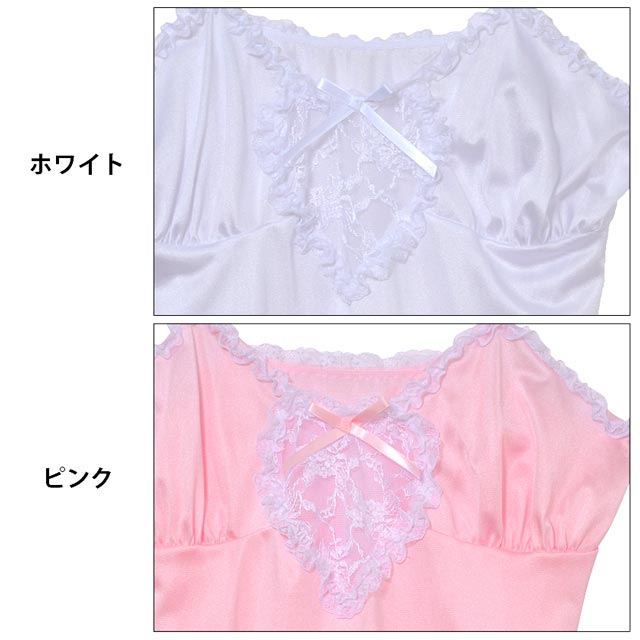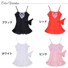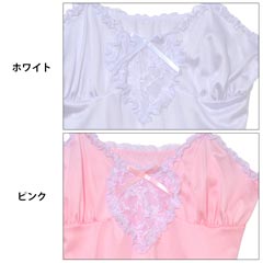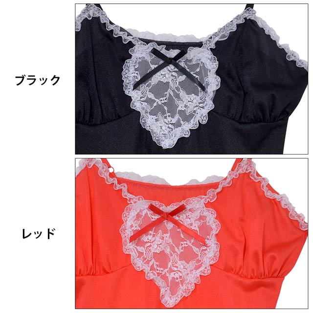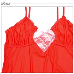 光沢感のあるストレッチサテンに、ハート型のレースとリボンが施された可愛いベビードール♪ハート型レースは谷間透けデザイン!!レース越しに見える谷間に、カレも興奮すること間違いなし☆フリル状になった細幅レースが乙女心を更にくすぐります♪セットのショーツはヒップが綺麗に見えるTバック☆カラーはピンク・レッド・ブラック・ホワイトの選べる4色展開♪可愛さもセクシーさも抜群◎なベビードールです!!