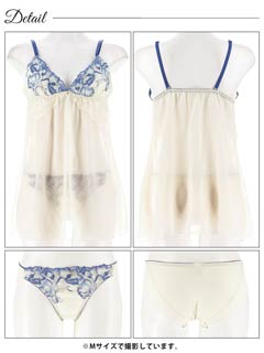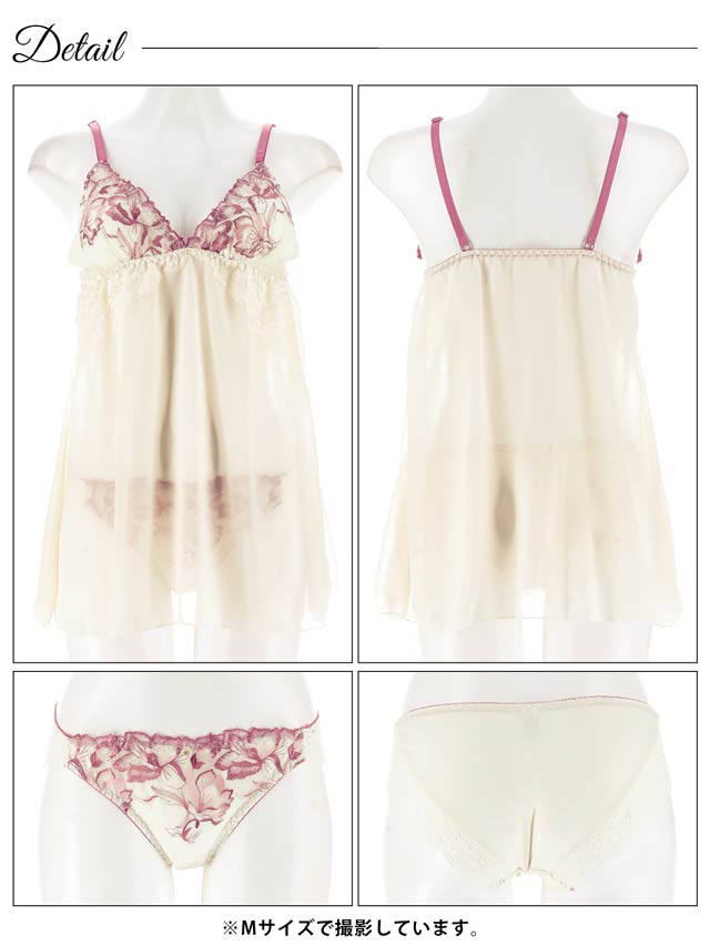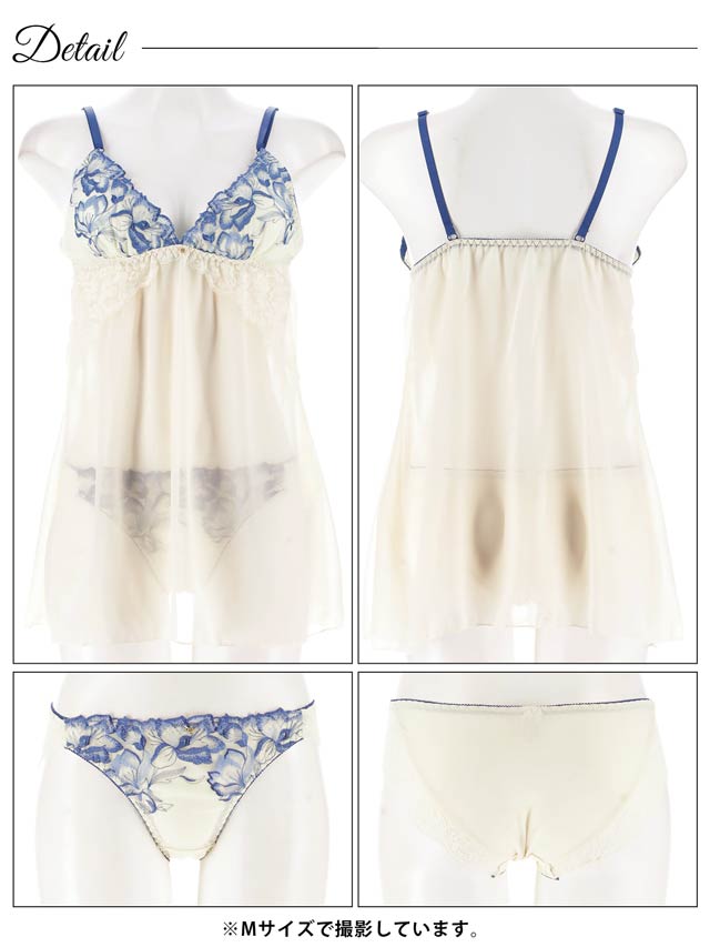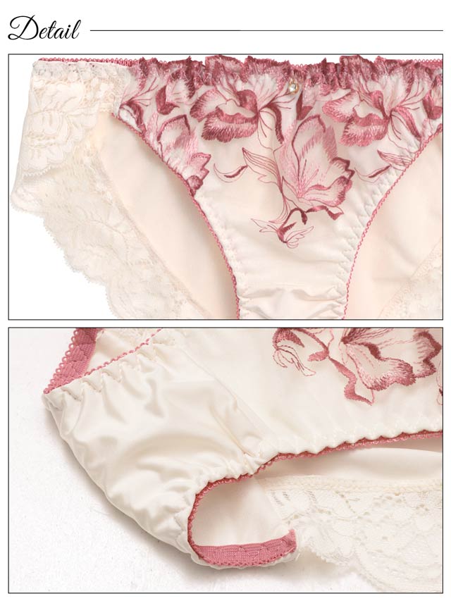 ダスティブルームエンブロイダリー育乳脇高ブラジャー&バック透けフルバックショーツ