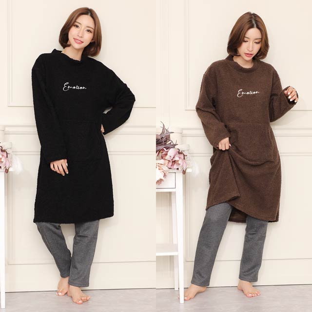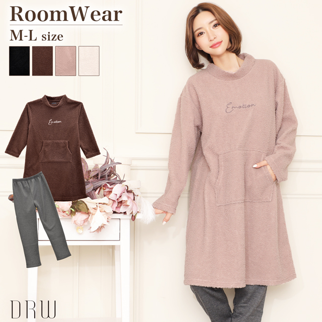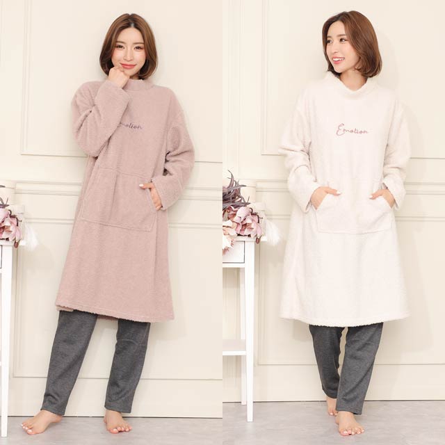 もこもこシンプルロゴ付きトップス&パンツ上下セット