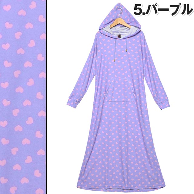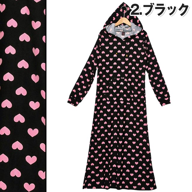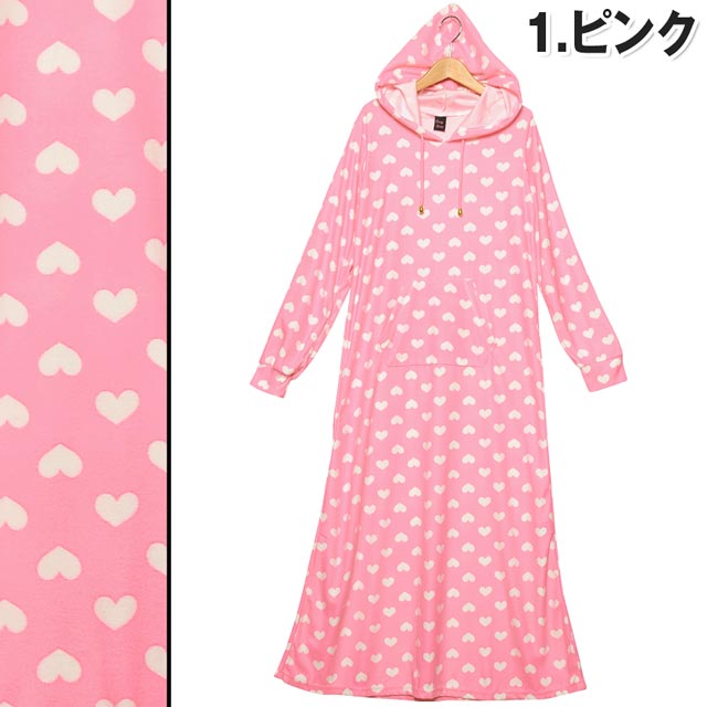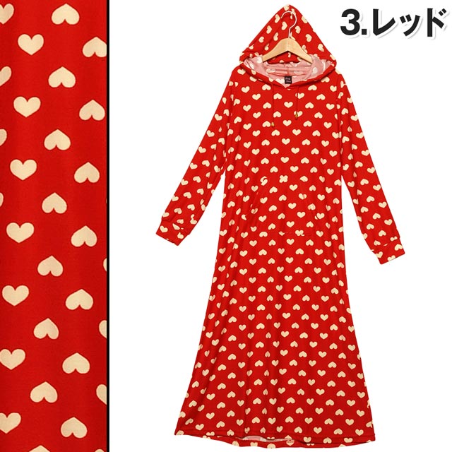 ラブリーなハート柄ルームウェア★パーカータイプのマキシワンピだから、総ハート柄でも甘くなりすぎずカジュアルCuteな着こなせちゃいます゜*。(*´Д`)。*°♪春夏にピッタリのパイル地は薄手な上に伸縮性バツグンで、ゆったり楽ちん♪お部屋でも過ごしやすさ抜群!!!ポケット付きで機能も優秀★
