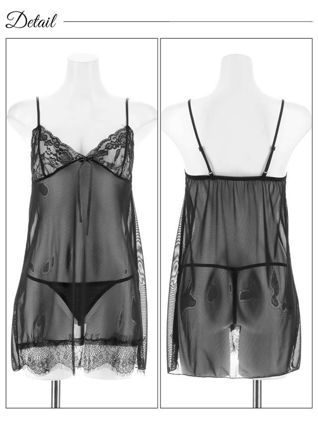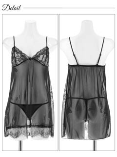 オールレースカットストリング育乳脇高ブラジャー&バック透けフルバックショーツ