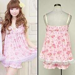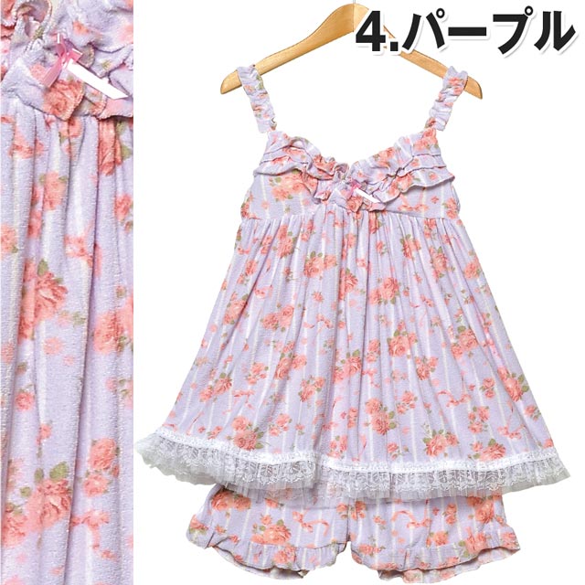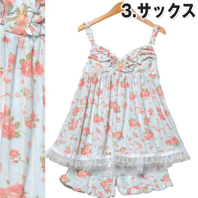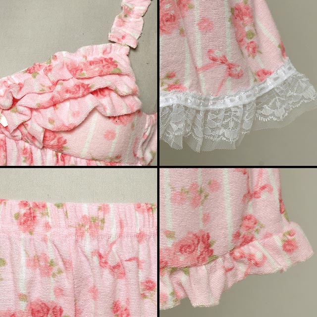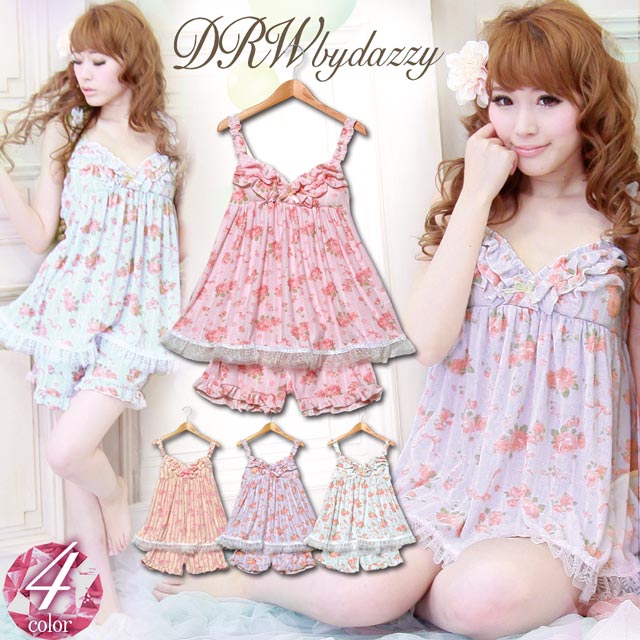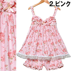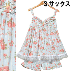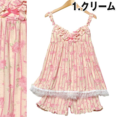 春夏ルームウェアに新作が登場!!お部屋でも可愛くいられる甘モテルームウェア♪さりげないストライプに薔薇を散りばめたSweetな花柄に彼もキュン★胸元・肩紐・パンツ裾のフリルや、キャミ裾のレースフリルが華やかCuteな雰囲気を演出します(*・ω・)bカップ付きだから一枚で着られるのも嬉しい(ゝω・?)♪