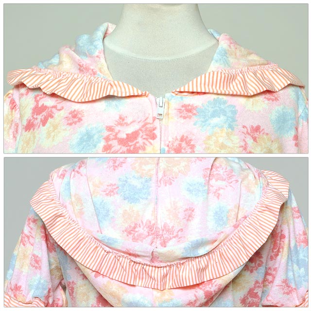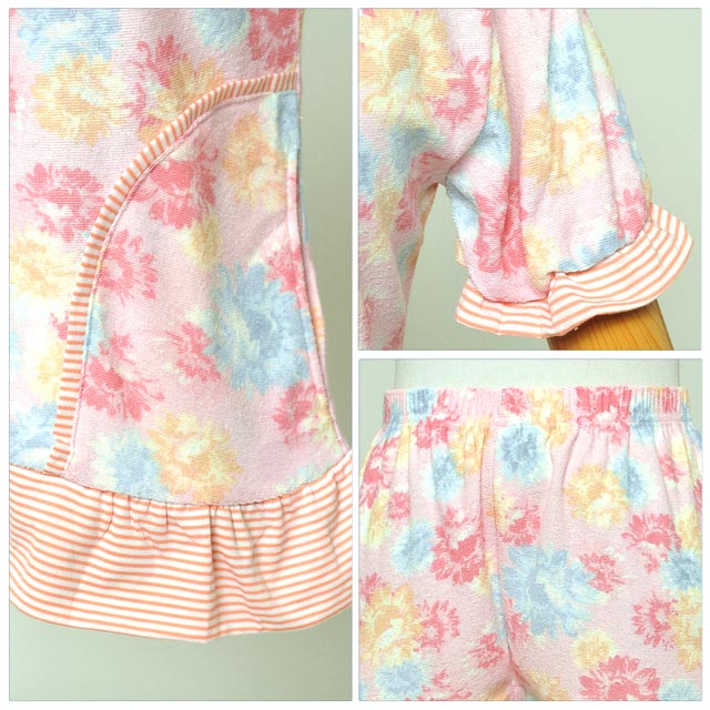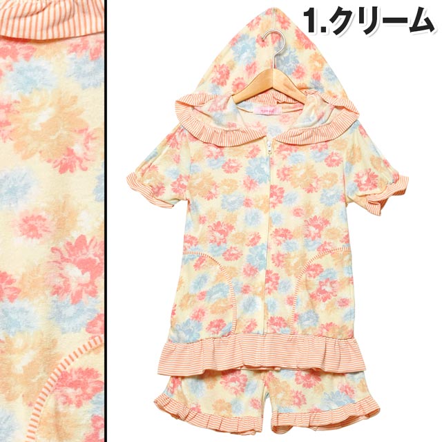 春夏ルームウェアに新作が登場!!ぼかしFlowerxボーダーフリル★ルームウェア♪+゜。パステル調のぼかしFlower柄×オレンジボーダーが乙女心をグッと掴む♪気分まで明るく華やぐ(ゝω・?)♪オシャレ度高いルームウェアです♪着心地の良いパイル地だから毎日着たくなっちゃう(*・ω・)b
