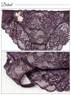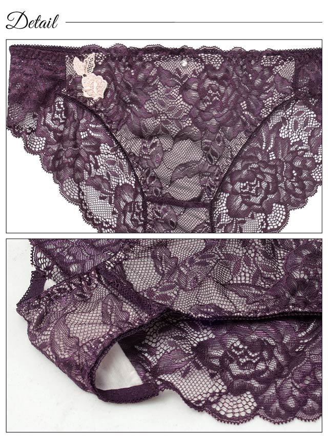 オールレースカットストリング育乳脇高ブラジャー&バック透けフルバックショーツ
