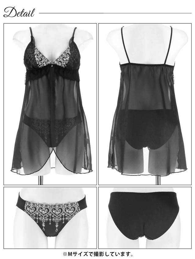 ダスティブルームエンブロイダリー育乳脇高ブラジャー&バック透けフルバックショーツ