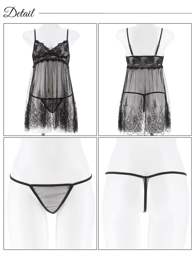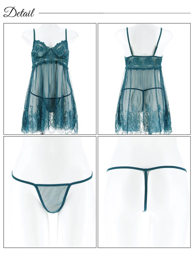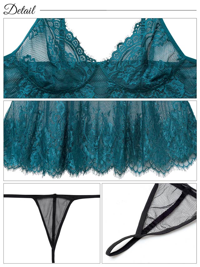 オールレースカットストリング育乳脇高ブラジャー&バック透けフルバックショーツ