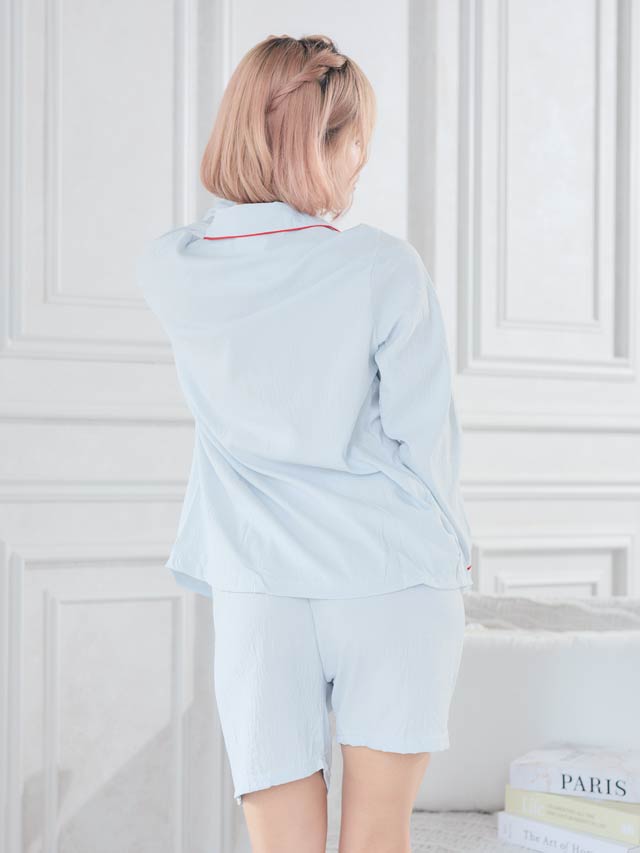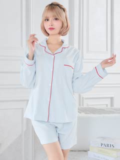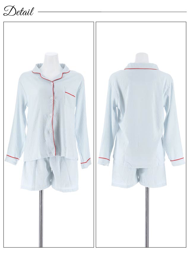 10/20新作!バイカラーパイピングシャツトップス&ショートパンツルームウェア