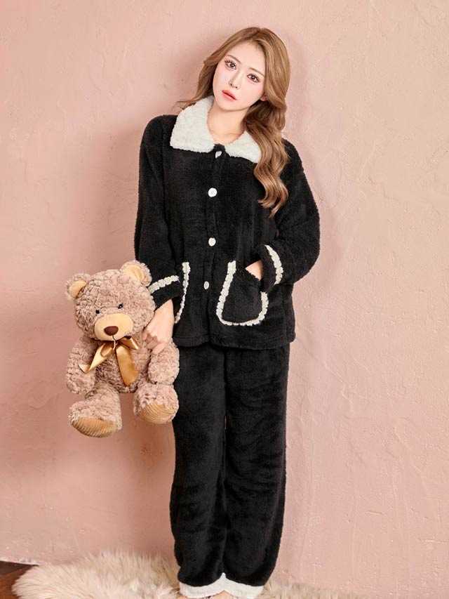 12/8新作!モノトーンもこもこトップス&ロングパンツルームウェア