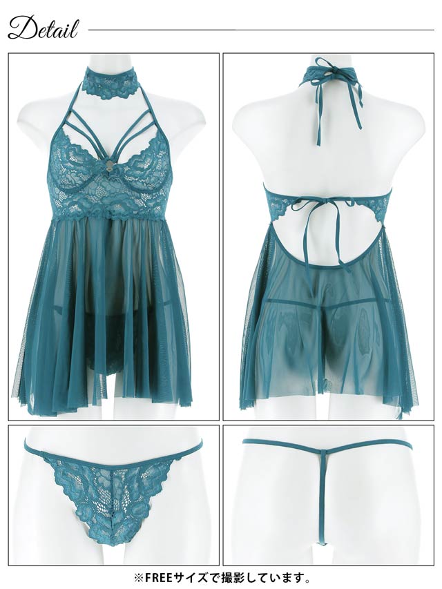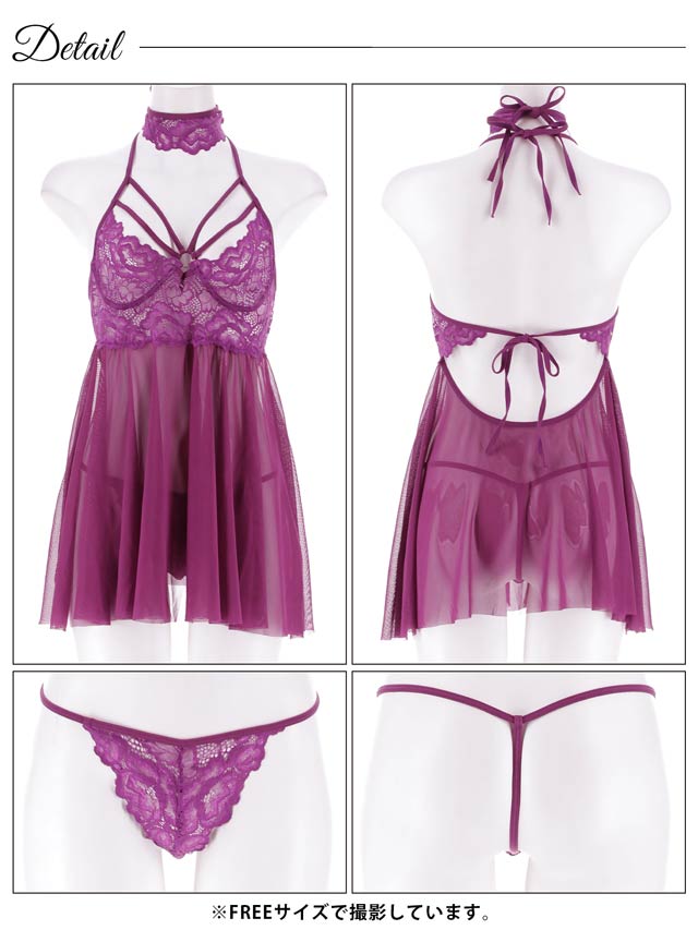 オールレースカットストリング育乳脇高ブラジャー&バック透けフルバックショーツ