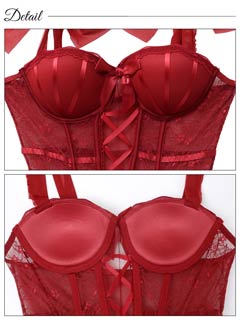 オールレースカットストリング育乳脇高ブラジャー&バック透けフルバックショーツ