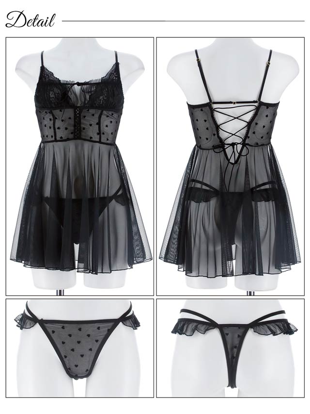 オールレースカットストリング育乳脇高ブラジャー&バック透けフルバックショーツ
