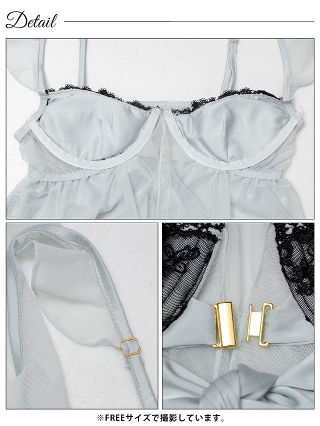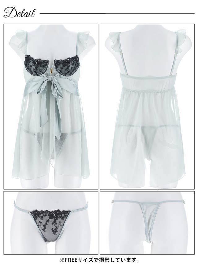 • 2/2新作!フェアリーフリルリボン ベビードール(ブルーグレー-フリー)