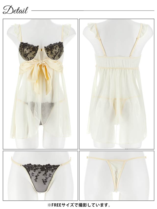 • 2/2新作!フェアリーフリルリボン ベビードール(クリーム-フリー)