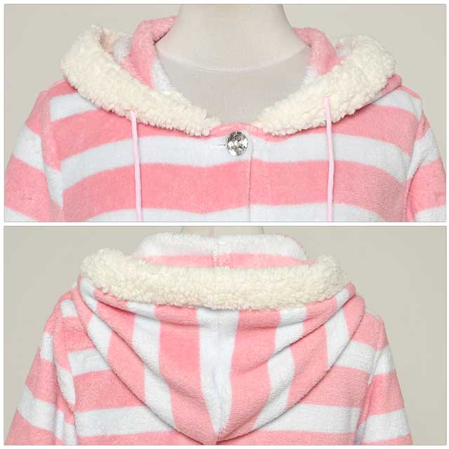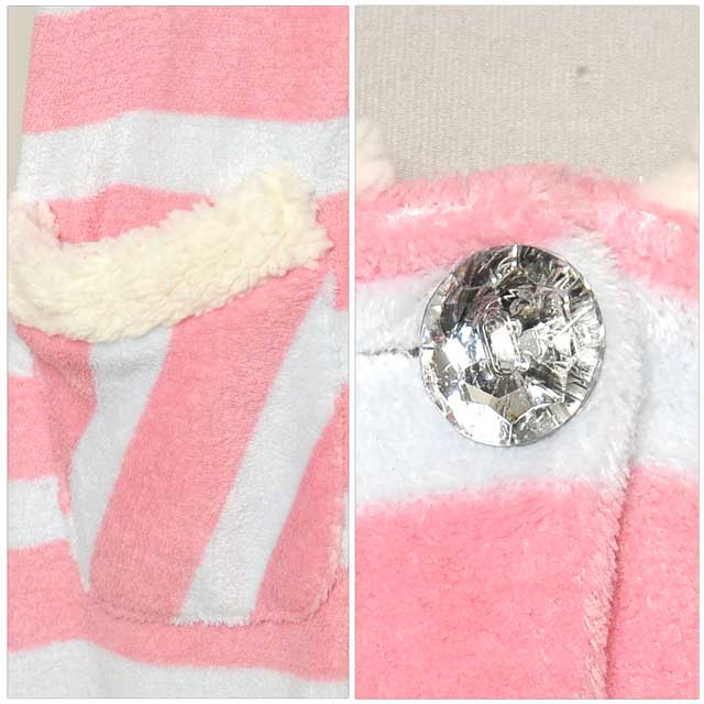 肌触り◎とっっっても可愛いふわもこウェア♪キラキラしたボタンがポイント★フードとポケットの"もこもこボア"でCUTEさアップ♪寒い日には、いつものルームウェアの上からさっと羽織るだけ!!ガウン感覚で着れるよ♪足まである丈なので、腰周りも"ヌクヌク"暖かく包み込んでくれます!!誰が見ても『可愛い!』と言わせちゃう愛されルームウェアはいかがですか(・▽・)♪