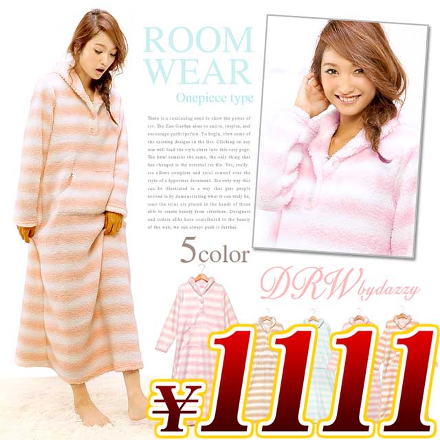 ボーダー柄マキシワンピ風ルームウェア