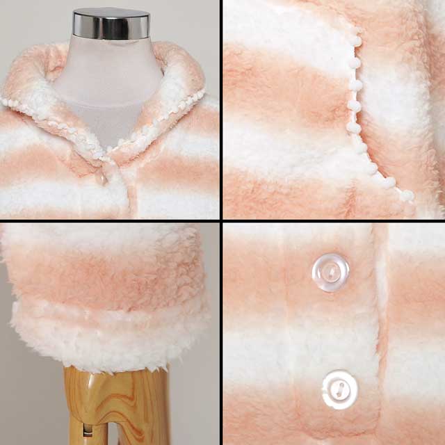 怪獣のたてがみ付き!キュートなボーダー柄モコモコオールインワン