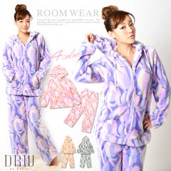 バイカラーケーブルボアトップス&ロングパンツルームウェア