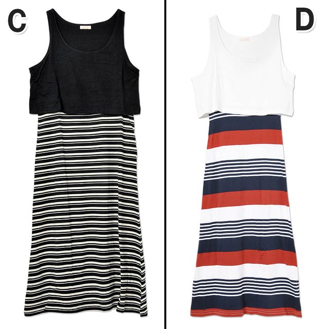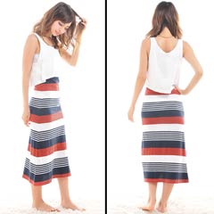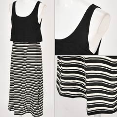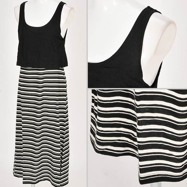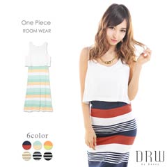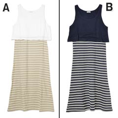 マルチボーダー柄レイヤード風ノースリーブマキシ丈ワンピース