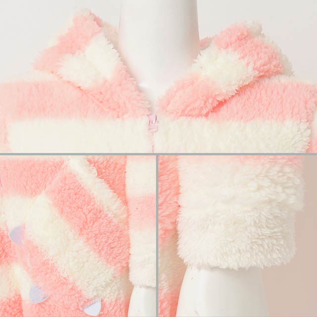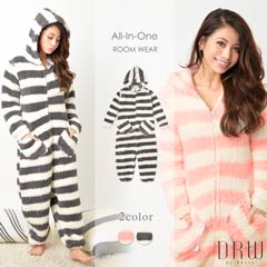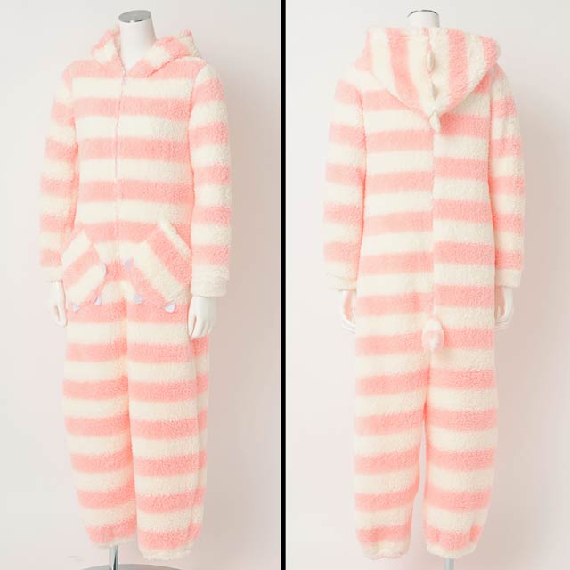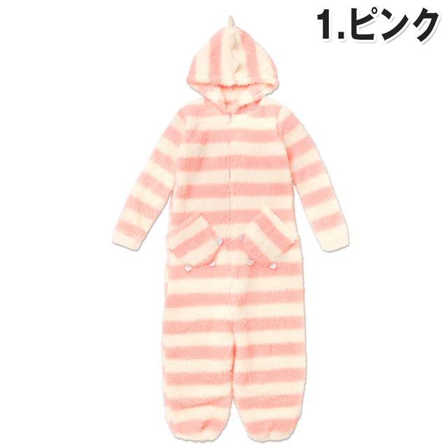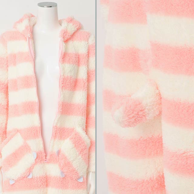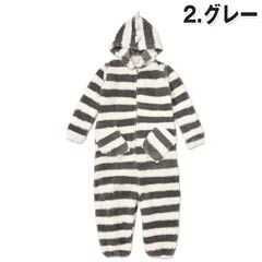 怪獣のたてがみ付き!キュートなボーダー柄モコモコオールインワン
