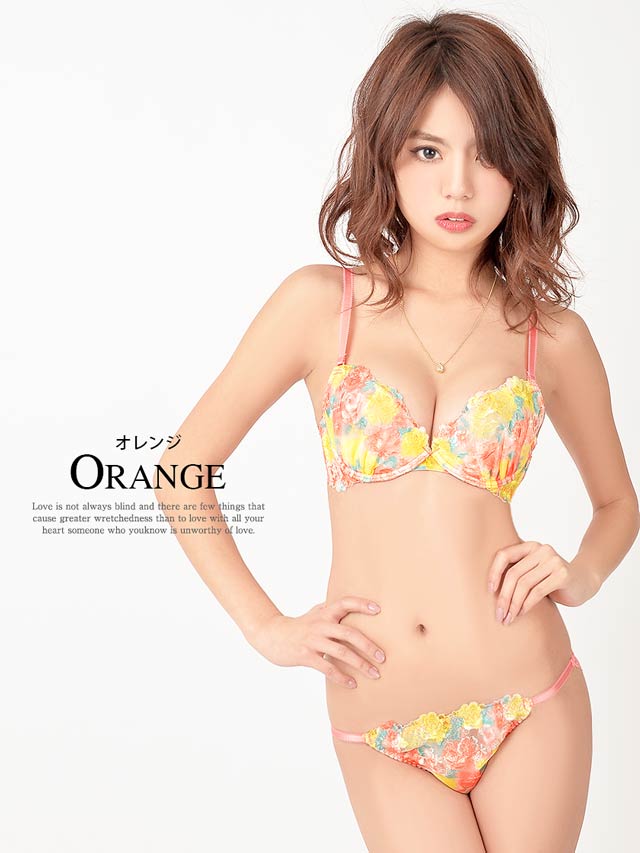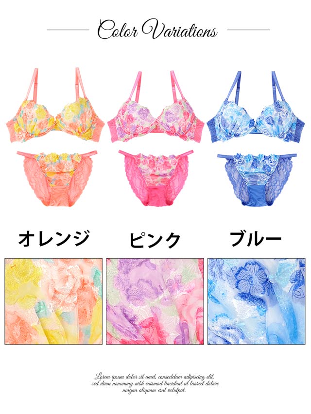 【Regalo】キュートな花柄刺繍×カラーチュールレースブラジャー&ショーツ/CUTE