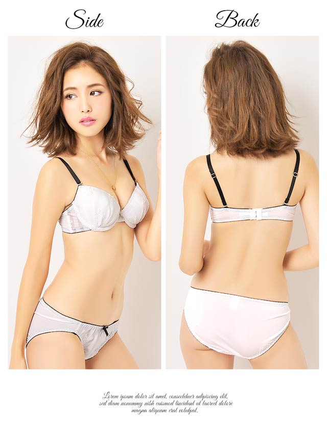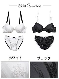 雪の結晶の刺繍付きモノトーンブラジャー&ショーツ/SEXY