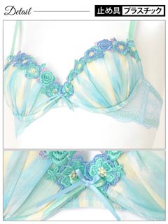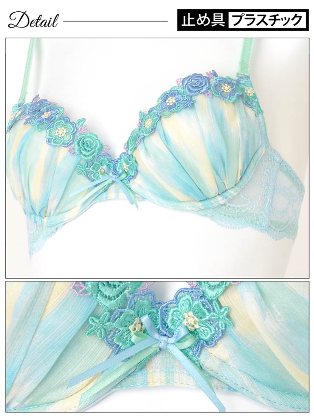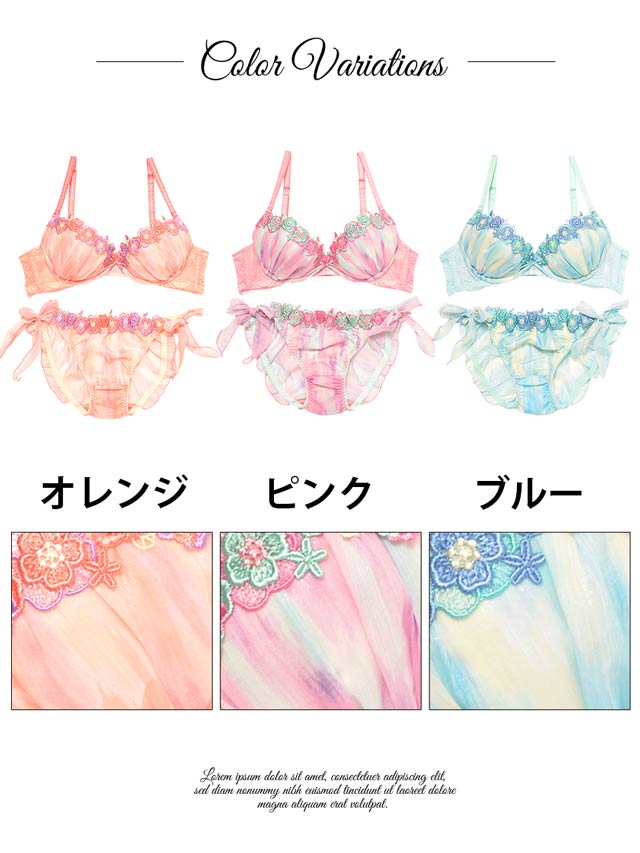 【Regalo】紐パン付flower刺繍×水彩グラデーションブラジャー&ショーツ/CUTE