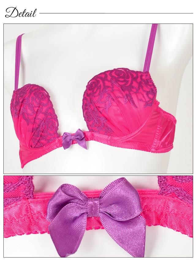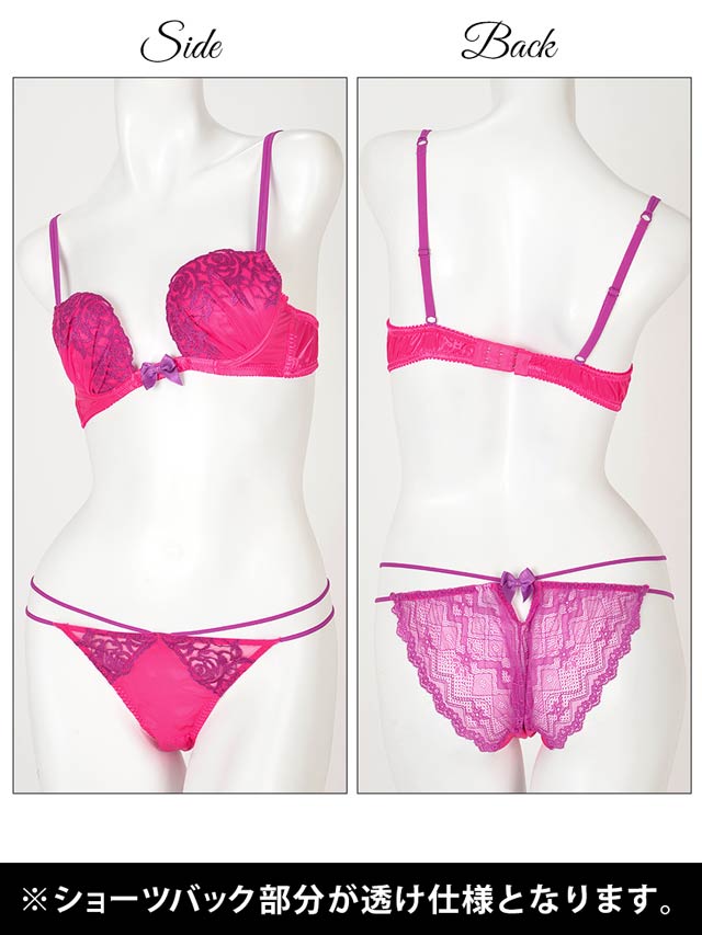 ドエロい透けショーツがセットになった過激なローズ刺繍ブラ★谷間部分が大きく開いたホットリフト型!胸元の開いた服でもブラがはみ出ず綺麗に谷間魅せができちゃいます♪シアーチュールに施されたゴージャスな薔薇刺繍はインポートブラのようなラグジュアリー感を醸し出します★透けレースヒップxレイヤード風Wストリングのエロすぎるショーツで360°セクシーにキマる!!彼を魅了する勝負ランジェで特別な夜を過ごしてください♪