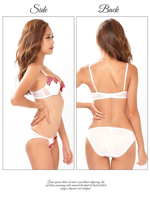 真紅Rose刺繍ブラジャー&ショーツ/SEXY