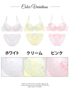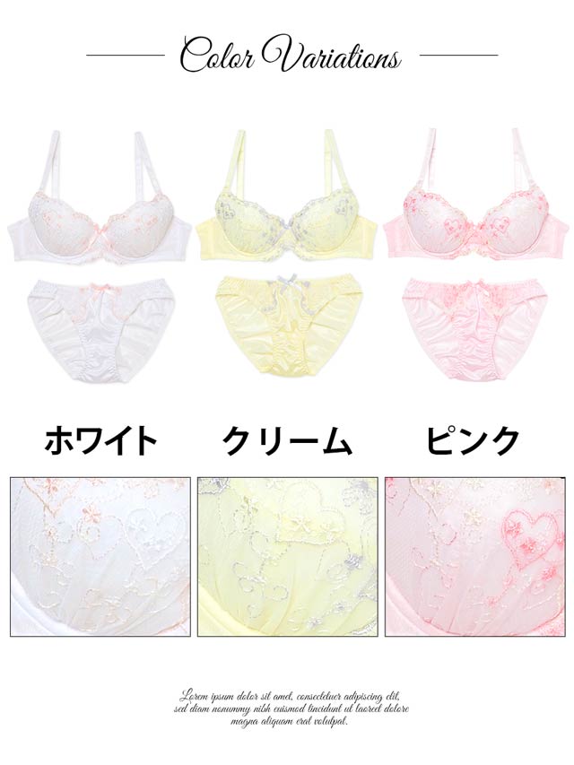 チュール×LOVELYハート刺繍ブラジャー&ショーツ