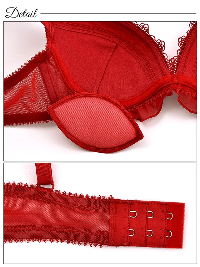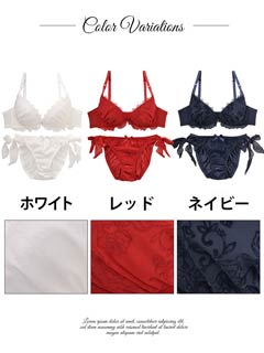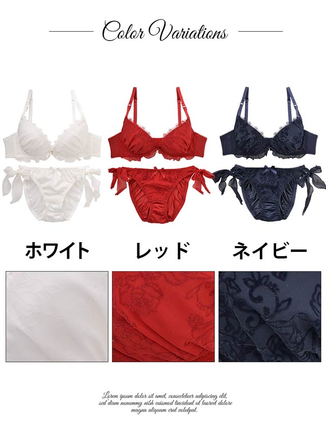 【Palissee】フェイク紐パン付薔薇フロッキーブラジャー&ショーツ