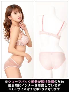 透けショーツ付サイドレースアップレースブラジャー&フルバックショーツ