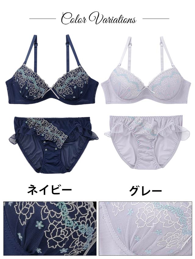 ラメ入りローズ刺繍をあしらった大人の花柄刺繍ブラ。大きめのローズ刺繍をチュールに描いた上品デザイン。その上からエメラルドに輝く花モチーフのオーロララメ刺繍を散りばめ華やかに仕上げました♪フルバックはサイドの裾にフリルラインをキュートに飾りつけ☆大人可愛い花柄ブラで日常を華やかに♪