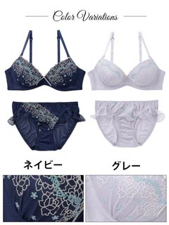 透けショーツ付オーロラローズ刺繍ブラジャー&フルバックショーツ