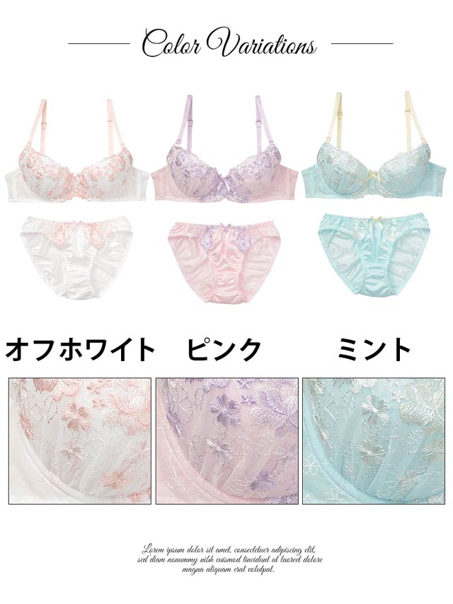 【Fairy】ハーモニフラワー刺繍ブラジャー&フルバックショーツ