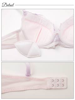 女の子らしい、お菓子のような色合いがポイントのランジェリー♪二色の繊細な刺繍で織り成すROSE柄が高級感をもたらします。大・中・小の花柄刺繍がバランス良く散らされていますよ*ショーツはフロント部分がチュール仕様でちょっぴり透け見えちゃう♪可愛いとちょっとのエロさを兼ね備えたブラセットです☆