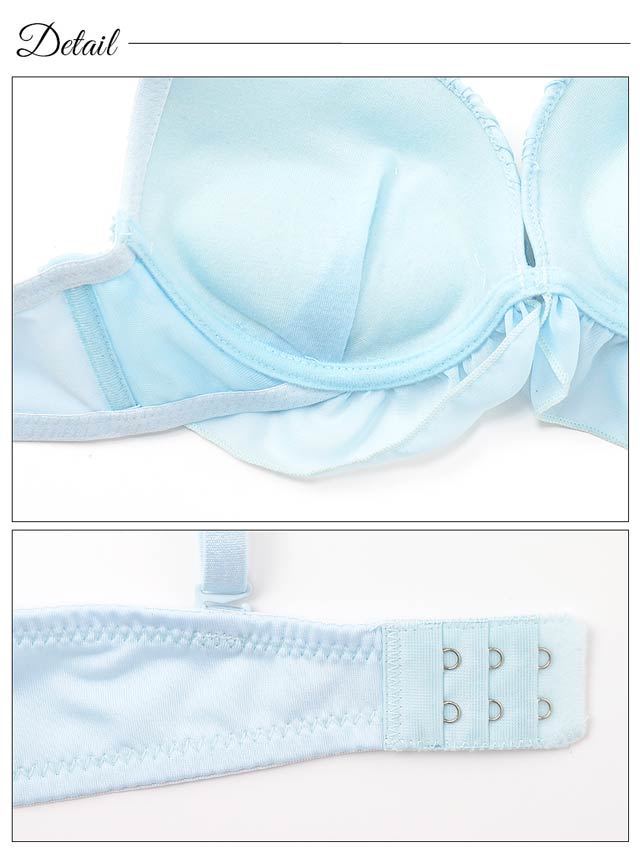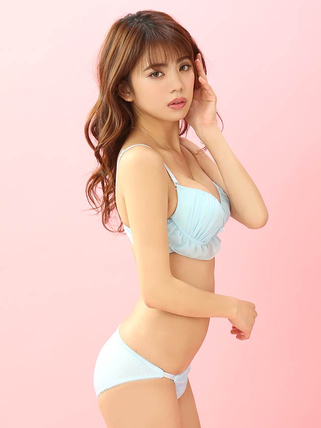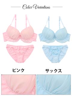 淡いパステルカラーの無地シフォンランジェリー♪アンダーには大判フリルを飾り、もっとCUTEなデザインに*ショーツは腰回りを華奢に見せる一本ラインショーツ☆シンプルで使いやすいデザインは、ヘビロテ間違いナシの一着☆