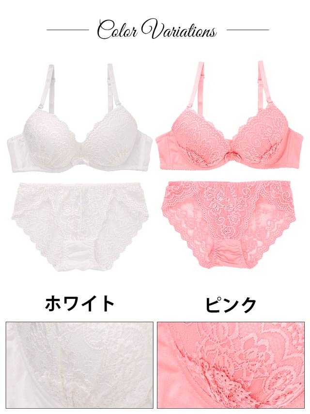 デコラティブ総レースブラジャー&バック透けフルバックショーツ