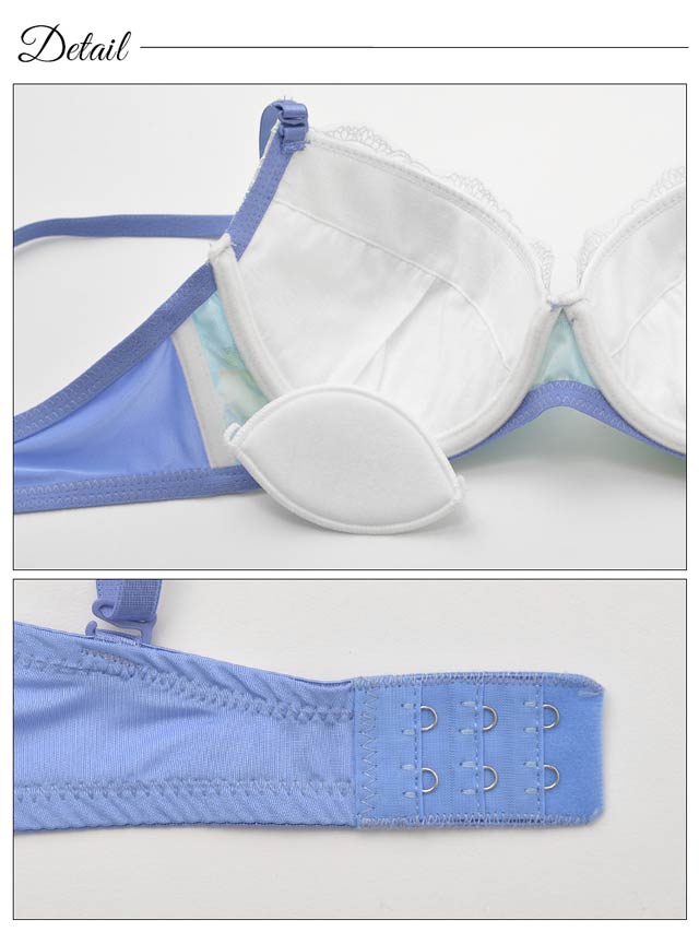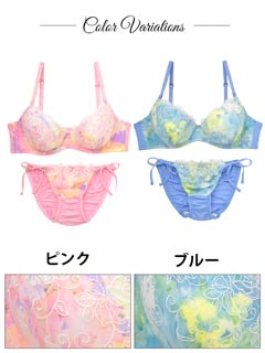 紐パン付ウォーターフラワー刺繍ブラジャー&フルバックショーツ
