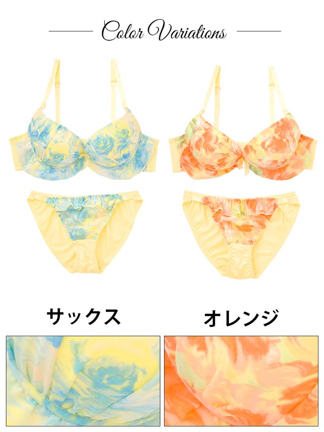 ブリリアントROSE柄シフォンブラジャー&フルバックショーツ