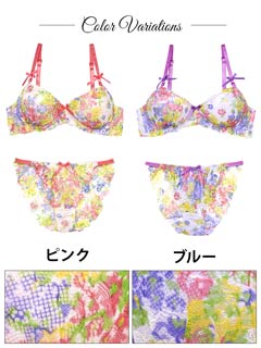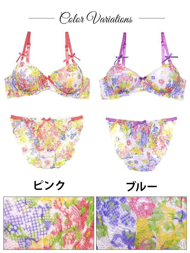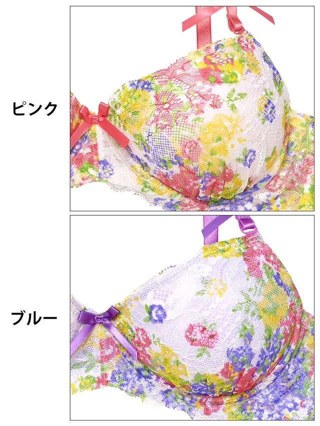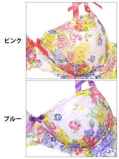 ブラカップ全面に施されたフラワーレースがエレガントなノンワイヤーランジェリー♪