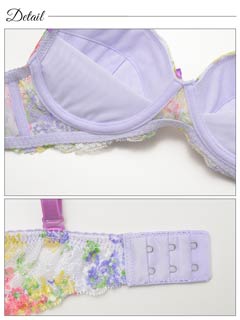 花柄レースを重ねたルックスはノンワイヤーブラとは思えない華やかさを演出!エレガントなRich感を醸し出します。カップ下側には二重のパワーネットを張ってバストをしっかり持ち上げ☆バストをしっかりホールドします!付け心地楽ちんなのにラグジュアリーに着飾れるブラは是非持っておきたいマストバイアイテムです♪