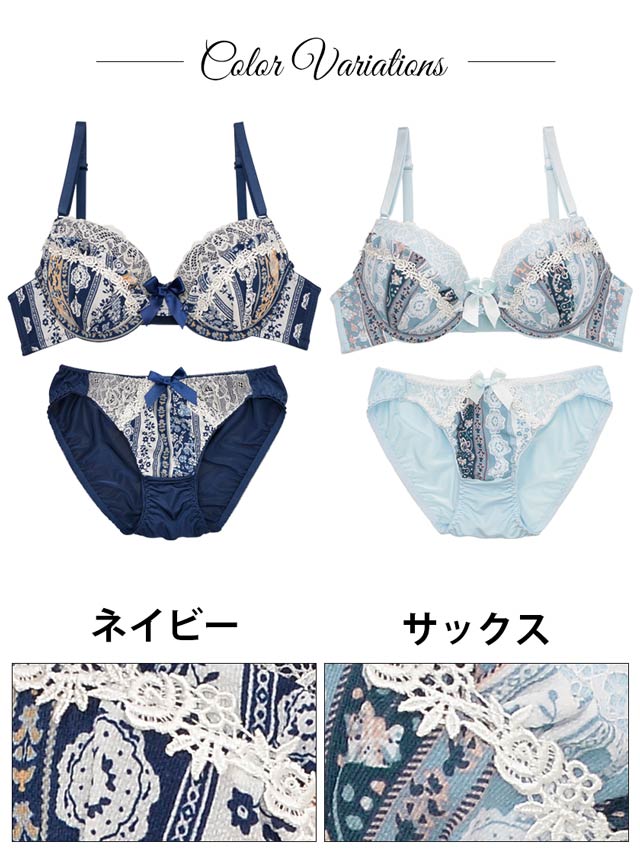 クラシックなヨーロピアンフラワー柄の大人可愛いブラセット♪上品なホワイトレースにギャザーを寄せた花柄シフォンをレイヤード。ふんわりシフォンがさり気なく胸元にボリュームを与えてくれます♪フルバックのフロントはサイドが透けレース仕様になっているちょっぴりセクシーなデザイン!可愛いだけじゃない大人の色気香る花柄ブラはデートの時にも活躍してくれること間違いなしの1着です☆