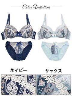 ヨーロピアンフラワー柄ブラジャー&フロント透けフルバックショーツ