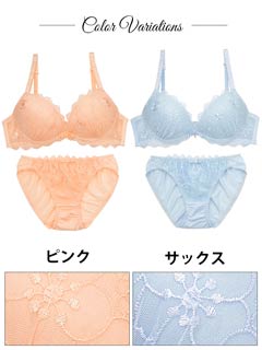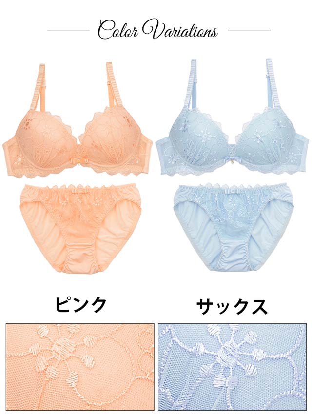 大輪フラワー刺繍チュールレースブラジャー&フルバックショーツ