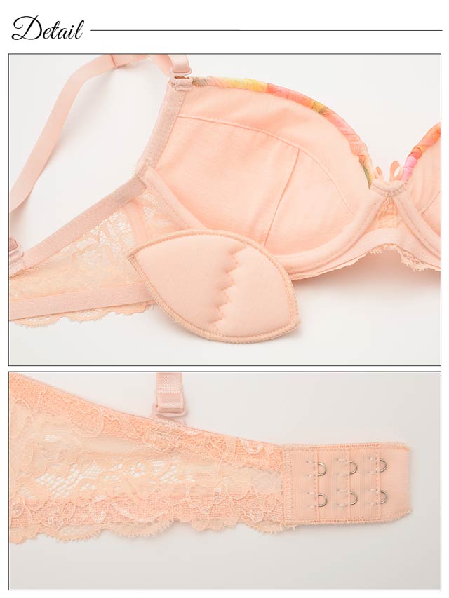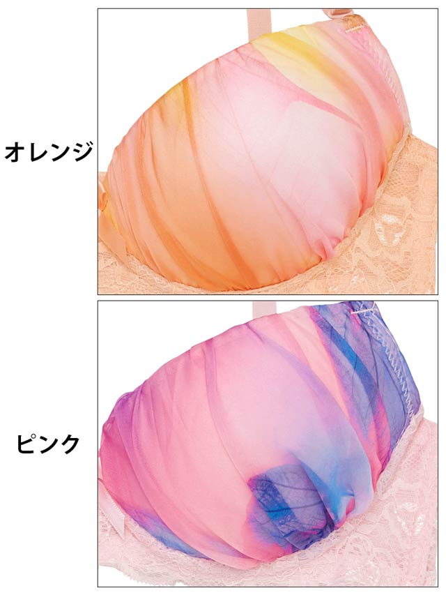 シフォンに淡いパステルのボタニカルグラデーションを描いた爽やかなランジェリー♪パステルカラーの溶け合うグラデーションが神秘的なデザイン!!たっぷりとギャザーを寄せたシフォンカップはさり気なく胸元にボリュームを与えてくれる優れもの★*ショーツのフロントサイドは透けレースになっていて、少し背伸びをしたい方にオススメのSexyデザイン♪可愛さもエロさも兼ね備えた甘エロランジェリーでカレの心をわしづかみ☆