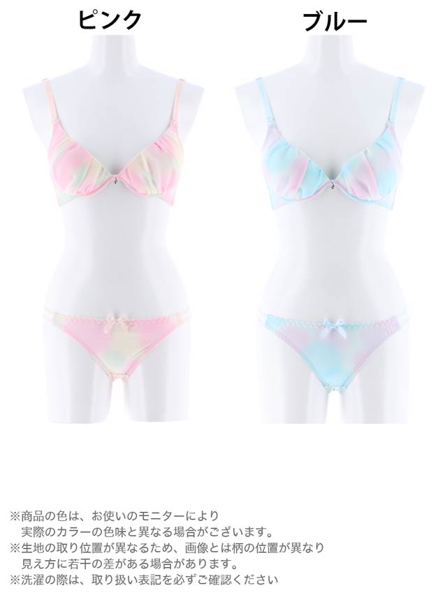 コットンキャンディみたいな甘かわランジェリー♪パステルなグラデーションに思わずうっとり…ふんわりとしたシフォンを重ねることによって、立体感のあるギャザーをつくり、バストにボリュームを与えてくれます!!ストラップのフロントはダブルになっていて、とってもCute!Tバックのサイドは細い2本のストリングで、気になる腰周りをスッキリ見せ!!このTバックSetはDRW限定デザイン&数量限定生産のため手に入るのは今だけ!大好きなカレに甘えたいときにピッタリのランジェリーです☆