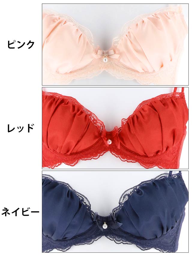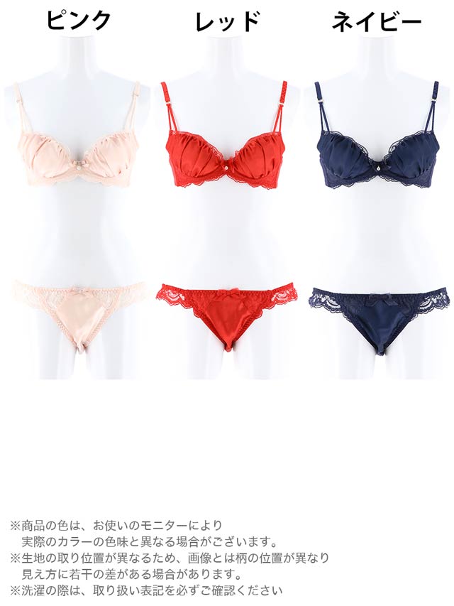 サテンのランジェリー☆カップにはギャザーを寄せて自然で丸みのあるバストを演出します♪ショーツはフロントのさりげない透け感がたまらない