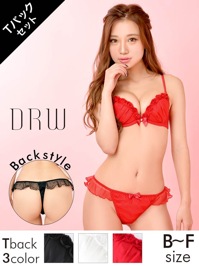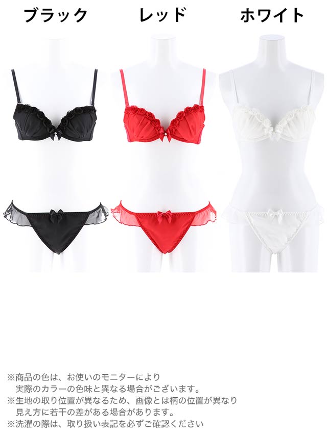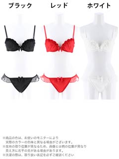 大きな薔薇のモチーフが印象的なXmasカラーランジェリー♪谷間部分にあしらわれた立体的な薔薇はプリンセスのドレスを連想させるデザイン☆