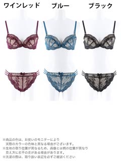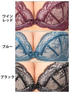レースをかぶせた色っぽいブラセット。まるでレース越しに肌がみえてしまってるようで、とってもセクシー♪(是非